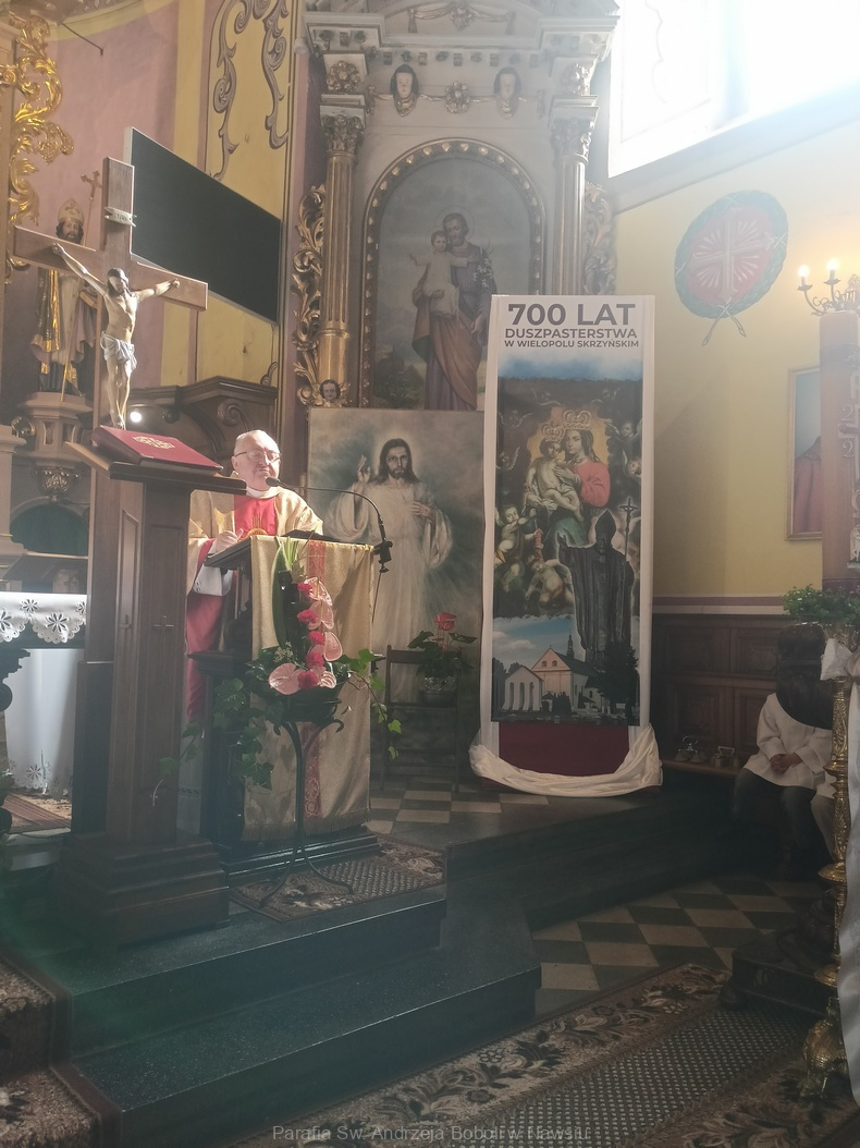 Nasza parafia włączając się w obchody jubileuszowe, wyruszyła w dzisiejszą sobotą z pielgrzymką do kościoła Jubileuszowego w Wielopolu Skrzyńskim. Tam o godzinie 11:00 miała Miejsce Eucharystia, której przewodniczył Ks. Mariusz Siniak, proboszcz parafii Parafia pw. Wniebowzięcia NMP.